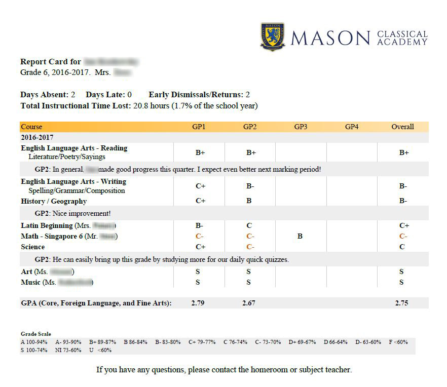 This report is available to parents for their own children through the Gradicus Parent Portal.